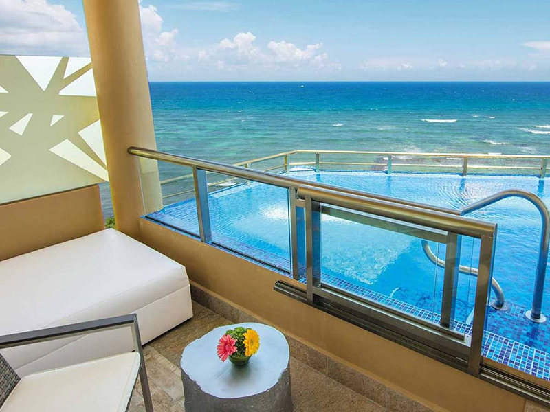The Beachfront Junior Suites are located in the midst of luxurious gardens. They are an oasis of beautiful interior furnishings complemented with soft décor and style with vivid colors of the Caribbean; all of these suites are located a few steps from the beach, all featuring king-size beds on ground floor and first floor. These suites boast 590 square feet of luxury with one king-sized bed, contemporary bathrooms with dual sinks and glass-enclosed showers, a romantic indoor Relaxing Hot Tub for two, and a private terrace or balcony, where guests can relax and enjoy intimate time together.